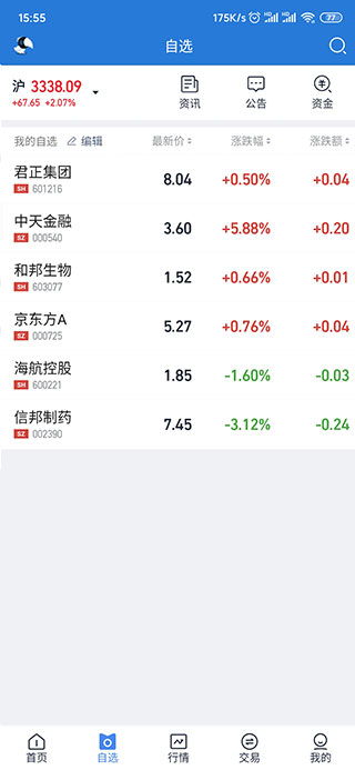3、用户可以将看中的股票加入到自选股中,以便随时翻阅: