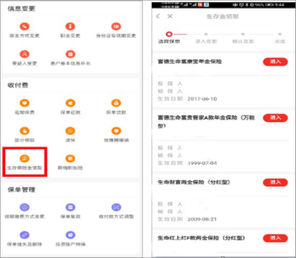 1、在“保单变更”模块“生存保险金”保全项目,进入到生存保险金保单列表。