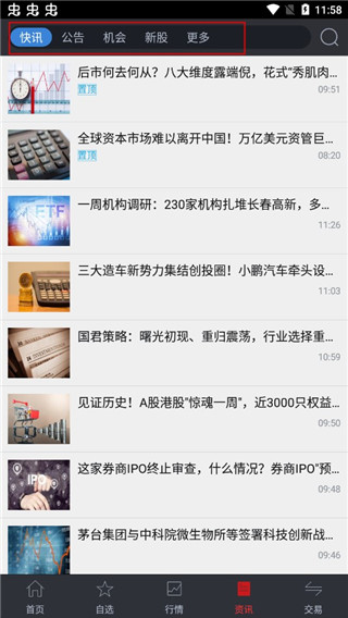 5、在“资讯”能够了解到一些公告、机会、新股等等。