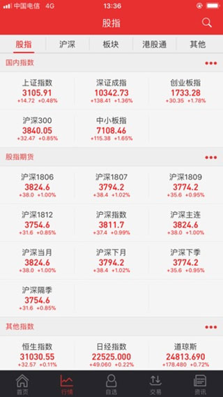 2、实时行情+技术分析:实施行情报价,提供日、周、月K线等分析周期,提供成交量等分析指标。 全球股市指数、香港指数、国内期货行情。