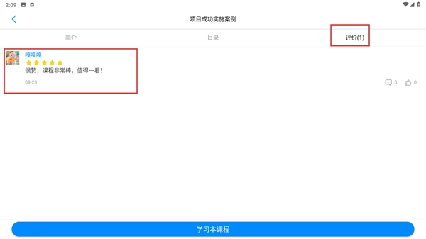 4、点击【评价】标签,就能查看其他用户对该课程的反馈,从而辅助了解课程的质量和实用价值。