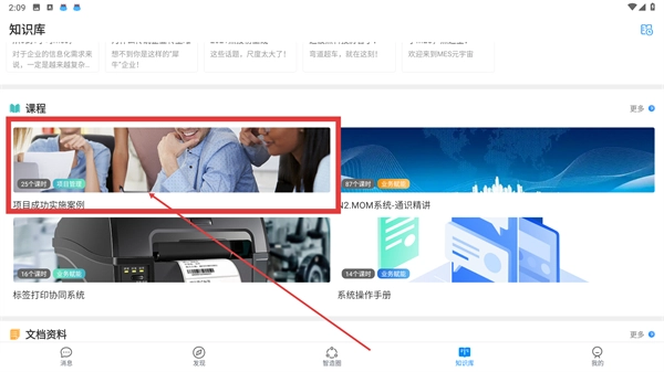 1、在知识库的课程板块里,挑选你想要学习的目标课程(例如“项目成功实施案例”),然后点击进入该课程的详情页面。
