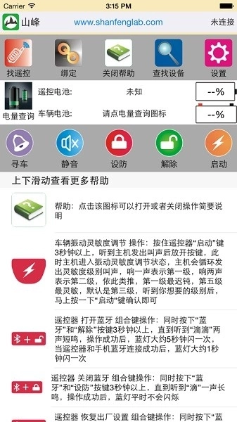 主要用于搭配山峰防盗产品系列使用,通过手机的蓝牙功能进行连接。