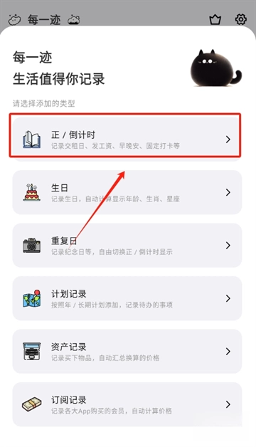 3、点击“+”后,界面会弹出生日、纪念日、考试安排等多种倒计时类型选项。