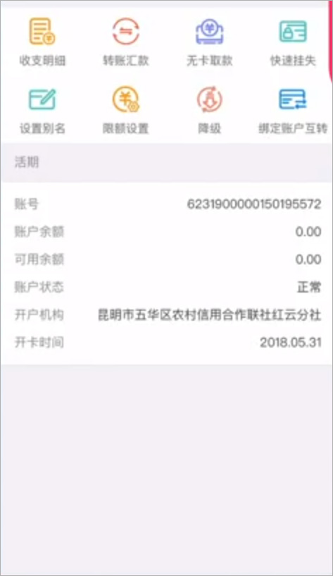 云南省农村信用社手机银行苹果版怎么查看卡号、开户行?