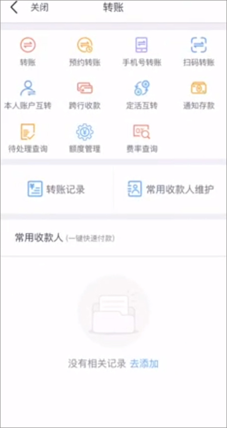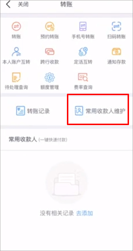 4、在转账页面中点击【常用收款人维护】,可以设置添加常用收款人,