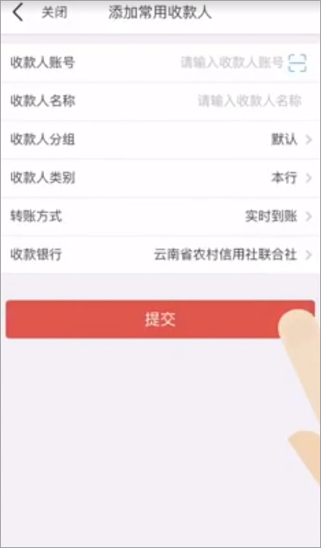 在打开的添加常用收款人中可以根据分组对多个收款人进行分组管理,可以根据转账方式选择诸如实时到账等多种转账方式,还可根据收款银行进行设置等