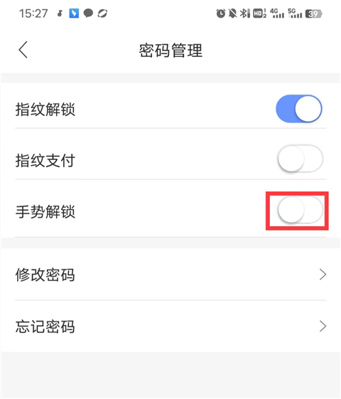 3、选择手势解锁;