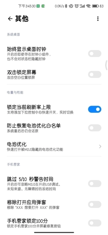 5、MIUI对电池优化功能进行调整,以此提升续航表现,同时避免相关设置被自动恢复