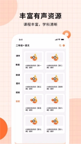 1、平台储备了海量有声资源,不仅包含视频、音频等形式的各类课件,资源的品类也十分丰富多元。