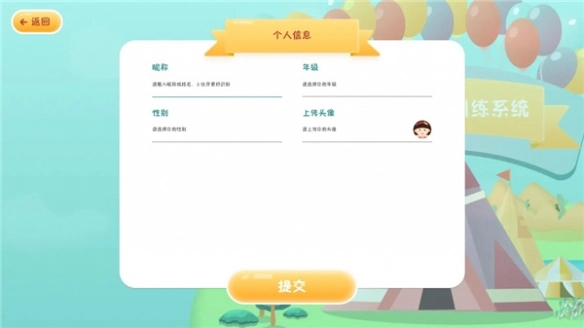 2、填写用户的个人信息,包括姓名,年级,性别等。