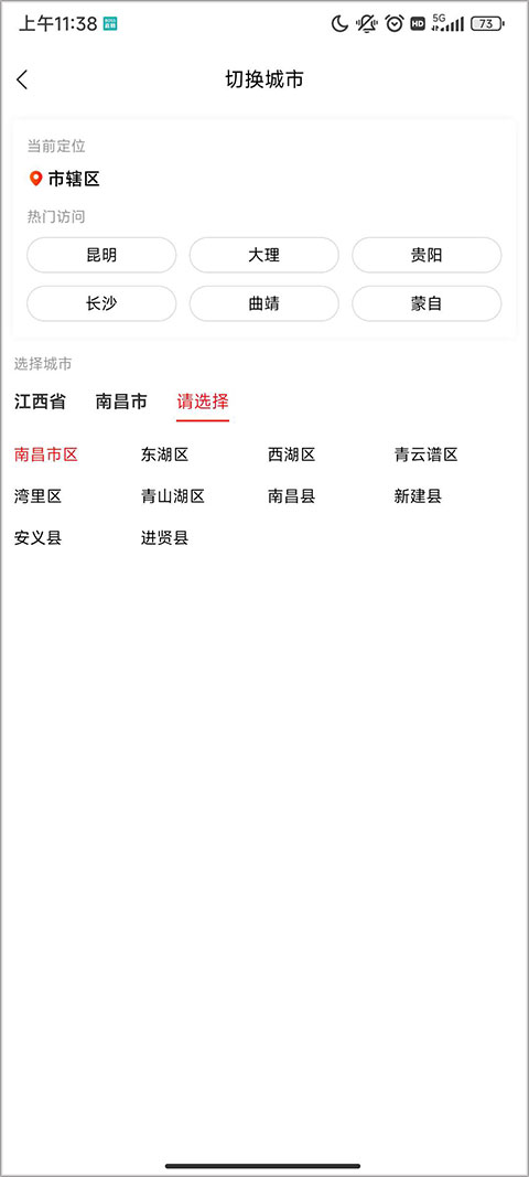 1、首先进入软件首页,点击左上角的当前位置地区。