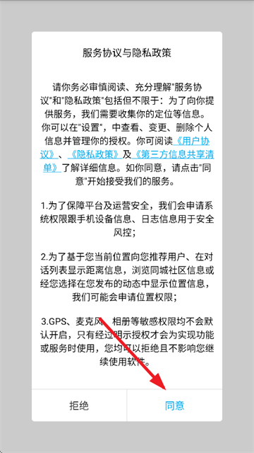 2、点击同意隐私政策