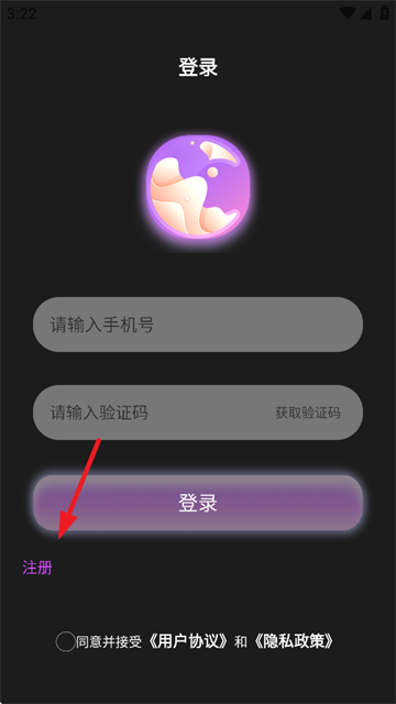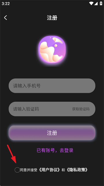 4、输入手机号和验证码,勾选用户协议