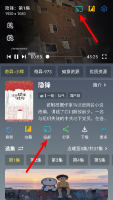 3、进入播放详情页,点击"投屏"按钮,如图所示。