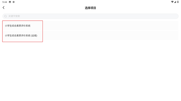 3、进入【选择项目】界面后,在列表中找到并选择对应的【小学生综合素质评价系统】项目,随后进入该系统。