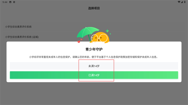 2、进入【青少年守护】界面后,请依据实际年龄,在【未满14岁】和【已满14岁】两个选项中选择其一,以此完成年龄认证步骤。