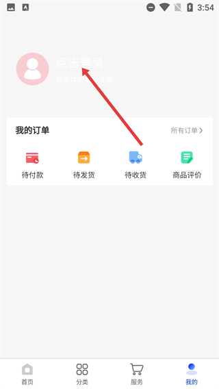 2、进入【我的】页面后,点击【点击登录】选项,登录后不仅能体验更多功能,还可以在【我的订单】里查看待付款、待发货等各类订单状态。