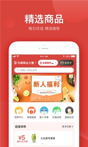永辉生活里的商品价格很实惠,主打优质平价、超高性价比,而且全场商品只要满18元就能包邮。要是购买会员卡,不仅能获得100元余额,充值时还有好礼相赠,另外还有会员日等各式各样的实惠营销活动。