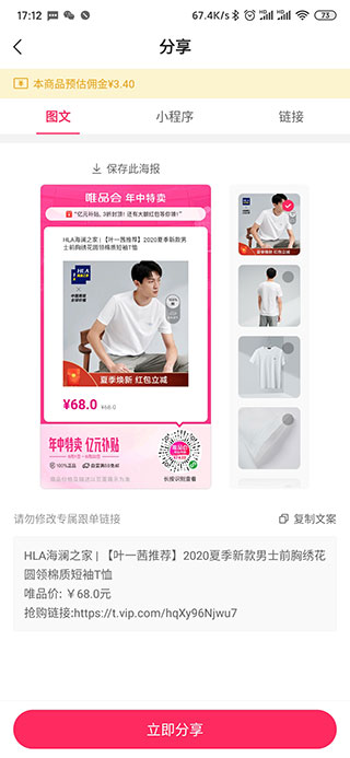 3、选着好想要的分享的商品后点进去,点击立刻分享: