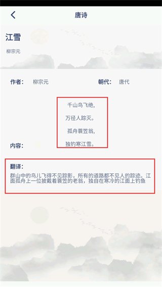 2、在唐诗列表页面,找到想要查看的诗作(比如《江雪》)并点击它,就能进入这首诗的详情页。