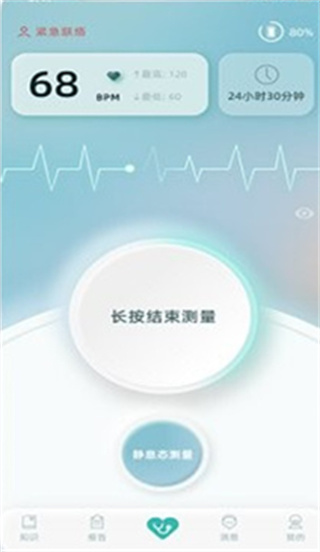 2、支持用户随时、随地测量自身心跳,以便及时掌握健康状况。