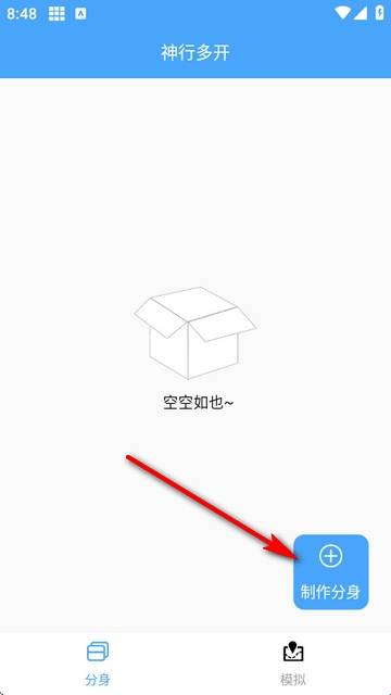 3、在软件右下角找到 “制作分身” 按钮并点击,进入应用选择页面。