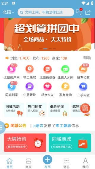 2、支持用户在线发布租房、招工、闲置出售等各类信息,用户也能浏览他人发布的内容,进而实现资源的快速匹配。