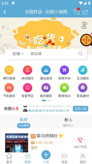 2、点击“商家”选项,即可获取各类店铺的相关信息;此外,还能通过店铺搜索功能,进一步查看具体店铺的详细信息。