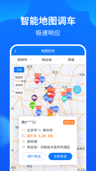 2、地图寻车:借助地图寻车功能,能迅速调配来自全国各地的回程车以及常跑车。