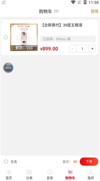 5、进入购物车页面 ,大家可以将自己喜欢的酒添加到购物车里