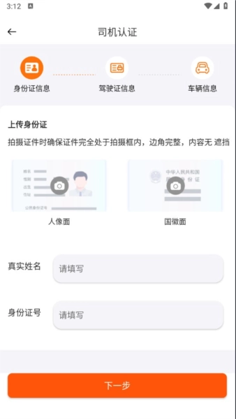 2.司机用户可直接在首页完成司机认证操作,具体界面如下所示