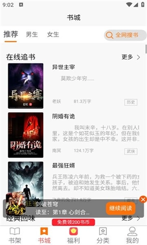 书城图书繁多,种类齐全,包括玄幻、武侠、言情、都市、穿越、宫斗、历史、军事、热门、网络、经典小说;