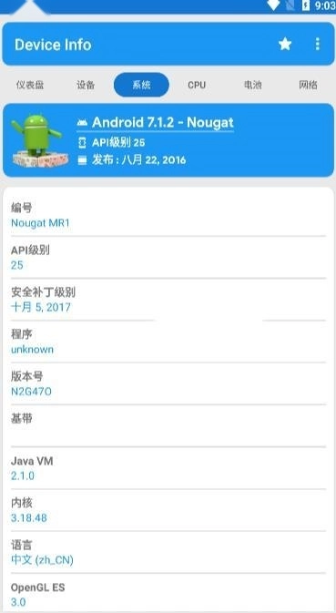 仪表盘:RAM、内部存储、外部存储、电池、CPU、可用传感器、已安装应用以及优化功能