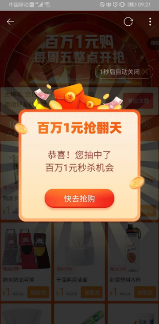 设置提醒防止自己忘记,然后秒杀成功只需要支付1元就可以了。