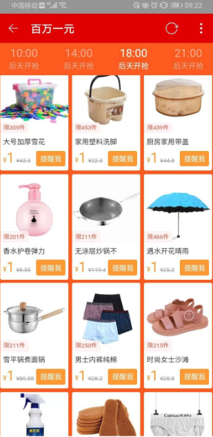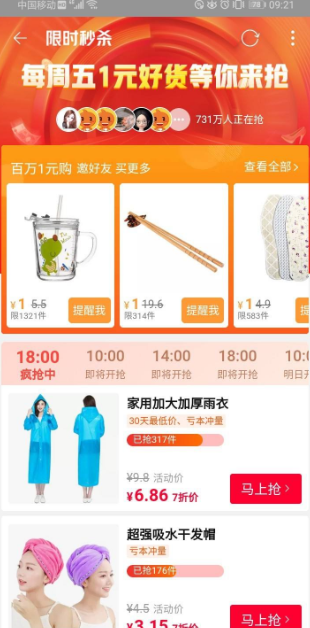 4、每天秒杀的商品种类很多,而且是分时间段的,如果一次没有秒到,可以等到下一个时段。