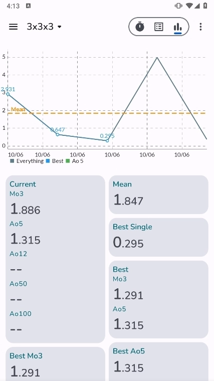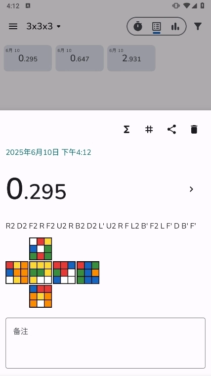 成绩记录:计时器自动保存每次计时成绩,支持查看最快、最慢及平均成绩。