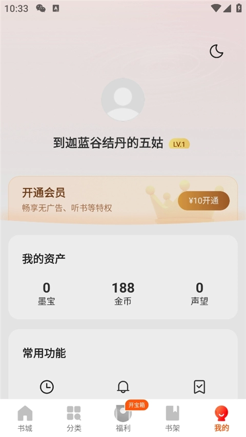 10、进入“我的”界面,你可以查看自己的墨宝、金币和声望,还能进行阅读偏好等相关设置。以上就是阅瓣免费阅读小说的使用方法介绍。