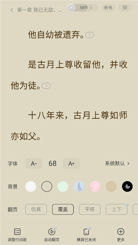 5、我们能够依据自身的习惯,对字体、背景色、翻页等相关功能进行设置,