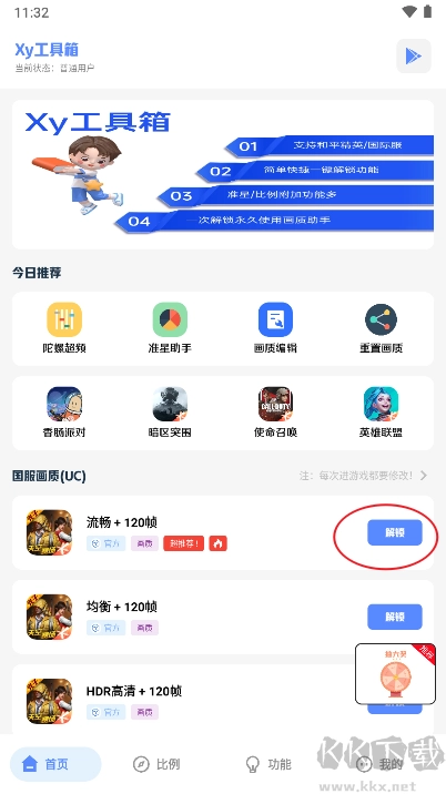 1、软件打开首页,选择功能解锁