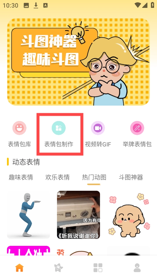 2、进入首页后,点击“表情包制作”的功能入口,即可开启你的创作之旅。