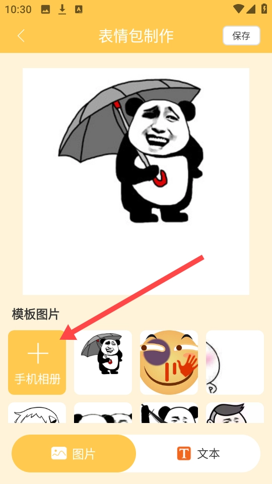 3、挑选你钟爱的表情模板,也能从手机相册里导入自定义图片充当底图,灵活度相当高。