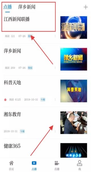 2、点击点播后,可选择观看萍乡新闻、江西新闻联播等新闻类节目,也能浏览科普天地、湘东教育、健康365等不同类型的内容,回顾各类精彩资讯。