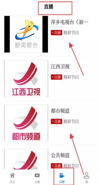 3、进入直播专区,可选择萍乡电视台新闻综合频道、江西卫视等频道,实时观看正在播出的精彩节目,重要资讯也不会错过。