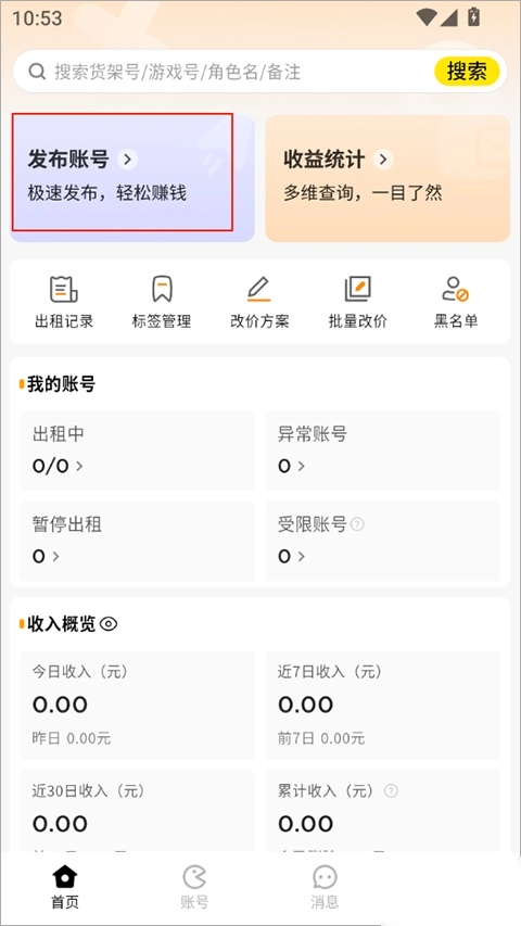 这款专为账号租赁场景设计的管理工具,能帮玩家盘活闲置的游戏账号资源。平台提供账号托管、快速发布、收益查看、便捷提现等一站式服务,让用户轻松打理账号的同时获取额外收益,有需求的玩家不妨试试。