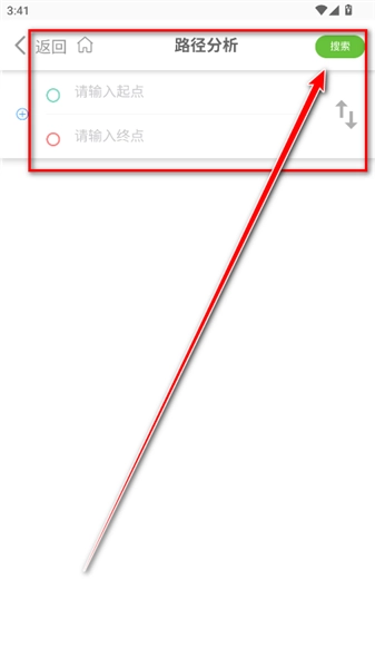 4、此外还具备路线搜索功能,输入起点和终点后点击搜索,就能呈现精准的路线指引。