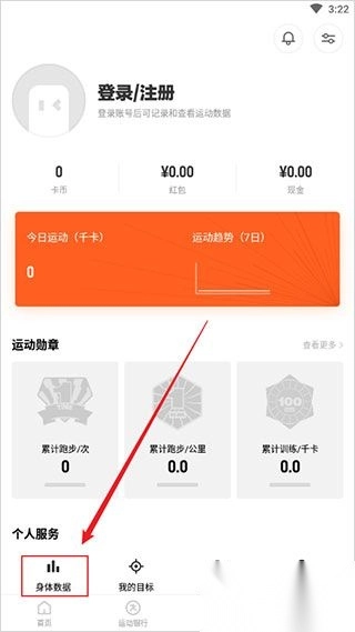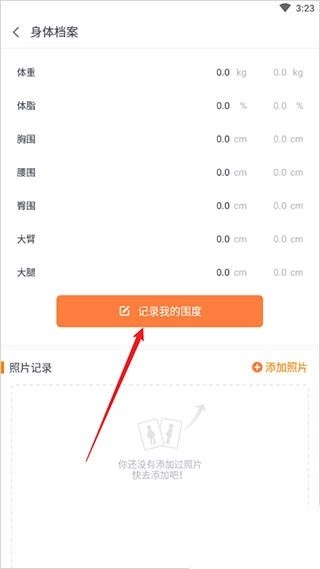 进入相应页面后,在身体档案板块找到并点击“记录我的围度”选项。