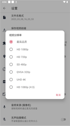 4、拍摄时可对视频格式与画质进行设置,拍摄完成后的视频会默认保存至手机相册。