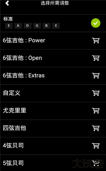2、进入设置界面后,点击第一项【调弦:标准】,在该选项中能够对乐器类型进行修改。