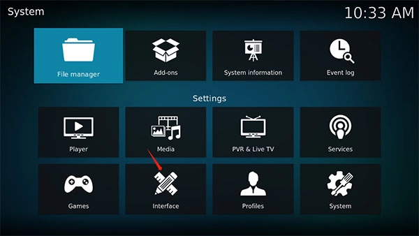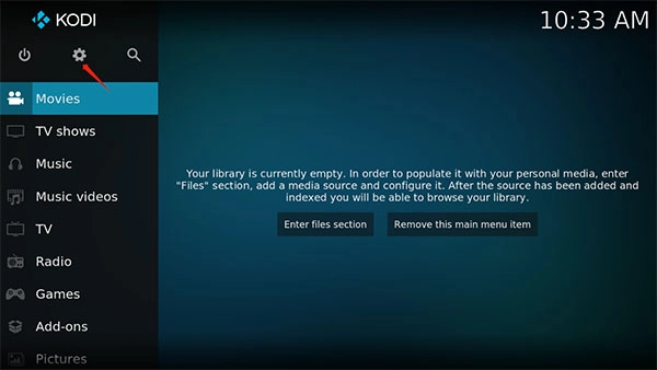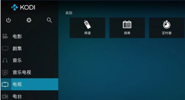 1、打开kodi中文版,进入主界面后选择左上方中间的齿轮